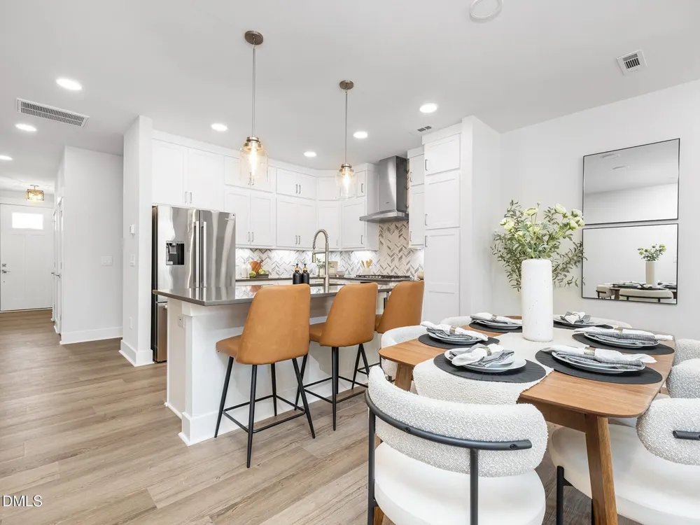 Don't miss the opportunity to own a brand-new Harrington Duplex End Unit townhome in a boutique community offering only 37 total homesites. Located minutes from Downtown Apex, this rare new construction opportunity combines modern design, low-maintenance living, and a highly convenient location near shopping, dining, parks, and major commuter routes. These homes are pre-construction and have not yet started, giving early buyers the advantage of selecting their preferred homesite and personalizing interior finishes as well as interior structural options. This is a rare opportunity. Estimated completion is Summer 2026, allowing ample time to plan your move. Enjoy true main-level living with no stairs required to reach the kitchen and gathering spaces. Enter directly from the garage or through the 8' front door into an open-concept main floor featuring 9' ceilings, oversized 6' windows, and a gourmet kitchen with Quartz countertops, soft-close cabinet doors, and excellent storage. The second floor includes a well-appointed primary suite with quartz countertops, a spacious walk-in shower and trey ceiling. A second bedroom, laundry room, and versatile loft—perfect for an office or relaxation space—complete this level. The third floor adds even more flexibility with another bedroom, full bath, and an additional loft—ideal for guests, work-from-home needs, or recreation. This floor has a door to close off the upstirs for a full suite option. With over 200 sq. ft. of walk-in storage, this townhome offers outstanding functionality rarely found in this category. Key Features: • Boutique 37-homesite community • Pre-construction opportunity — home has not started • Estimated completion: Summer 2026 • 3 bedrooms + multiple loft/flex spaces • Over 2,000 sq. ft. of living space • End Unit with added windows and natural light • 9' ceilings on first and second floors • Quartz countertops in kitchen and all baths • Soft-close cabinet doors and tankless water heater • Timeless black-and-white Farmhouse exterior • Buyer personalization available at the Design Center This new construction townhome in Apex offers a blend of style, space, and location with opportunities you do not want to miss!